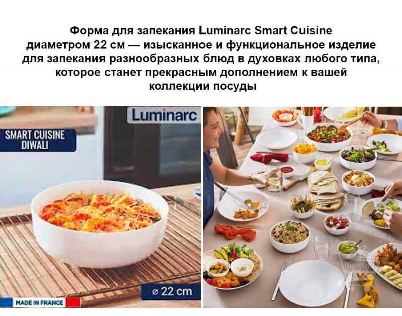 Элегантный дизайн позволяет подавать блюда прямо в форме — красиво и практично. Форма устойчива к царапинам и сохраняет свой блеск даже при активном использовании. Она компактна и не занимает много места при хранении. Изделие экологично и безопасно для здоровья, так как не выделяет вредных веществ при нагревании. Французское качество гарантирует долгий срок службы и надёжность. Форма Luminarc Smart Cuisine станет отличным подарком для близкого человека, который любит готовить.