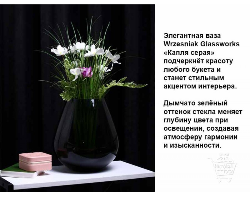 Эта ваза — выбор тех, кто ценит качество, стиль и долговечность. Она создаёт ощущение завершённости интерьера и добавляет ему индивидуальности. Ваза Wrzesniak Glassworks «Капля серая» — это гармония формы, цвета и материала, воплощённая в одном изделии.